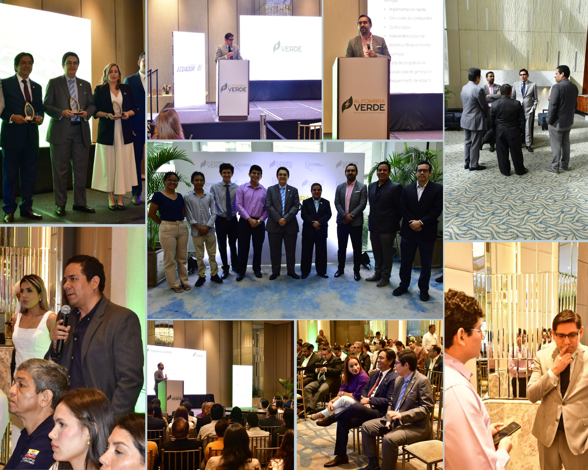 El Salón Fernandina fue el escenario donde se realizó la entrega de los Reconocimientos a la Eficiencia Energética “Alfombra Verde”, una distinción creada por la Corporación Nacional de Electricidad (CNEL EP) para resaltar proyectos y acciones que promueven el uso responsable y eficiente de la energía en el país.